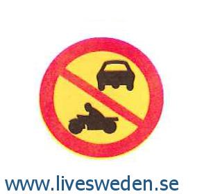 ممنوع المرور لكافة العربات الالية ذات المحرك وفي بعض الاحيان تكون هناك لوحة اضافية لا يسري هذا المنع على اليات النقل العام.